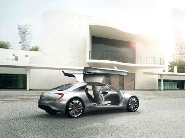 Mercedes decidió aplicar las "alas de gaviota" a un auto concepto, el F 125!, un espectacular modelo presentado en el Salón de Frankfurt 2011.