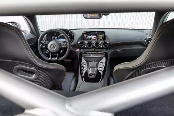 El motor cuenta con múltiples actualizaciones, incluido un nuevo cigüeñal plano que ayuda a mejorar el rango de revoluciones y que debería darle al modelo una banda sonora increíble. AMG promete una potencia máxima de 730 hp, que se envía a las ruedas traseras a través de una versión mejorada de la transmisión de doble embrague de siete velocidades del GT. La transmisión ha sido ajustada para manejar el gruñido adicional del motor del GT Black Series y ofrecer cambios más rápidos.