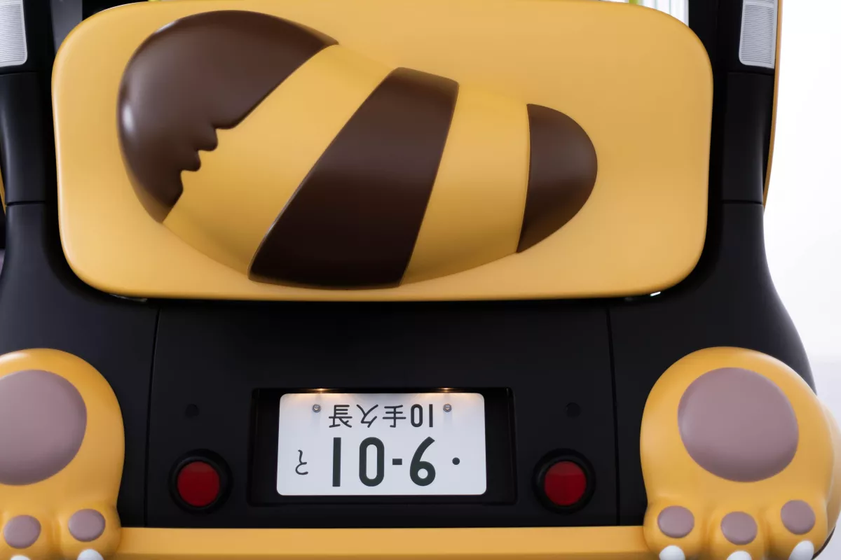 El Cat Bus APM cuenta con una gran cola y adorables patitas de gato, pero no podrás verlo en las pistas, ya que no está destinado a las carreteras públicas. Incluso, tiene una placa de matrícula decorativa cuyos números, según la idea de Goro Miyazaki, tienen un significado oculto al pronunciarlos en japonés.