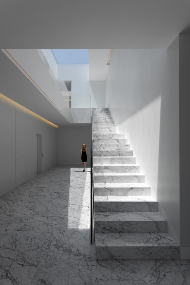 Su escalera y el atrio interior ayudan a distribuir las estancias, jerarquizando usos con todos los espacios abriéndose al jardín.