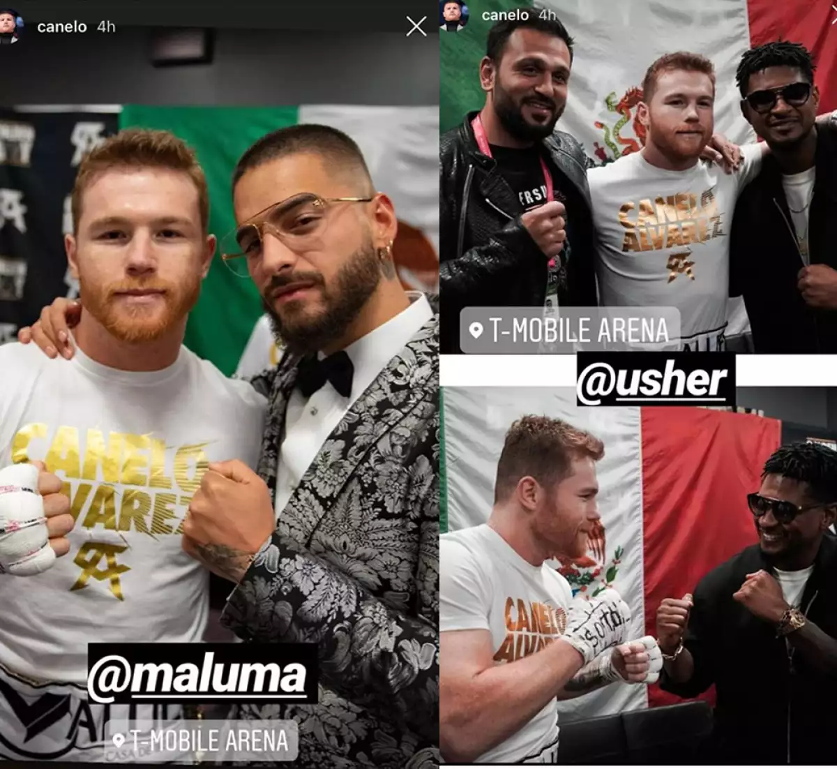 3. Maluma y Usher estuvieron con el mexicano en la pelea