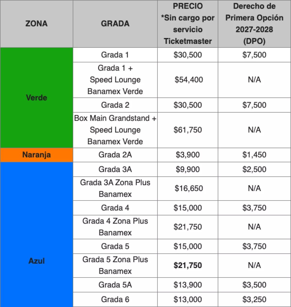 El DPO no se trata de un boleto, sino una opción de compra anticipada que estará disponible en todas las gradas, con excepción de algunos productos. De esta manera, cuando comience la venta de boletos para las ediciones 2027 y 2028, los usuarios recibirán un correo electrónico con los pasos a seguir. En este link puedes registrarte para el DPO.