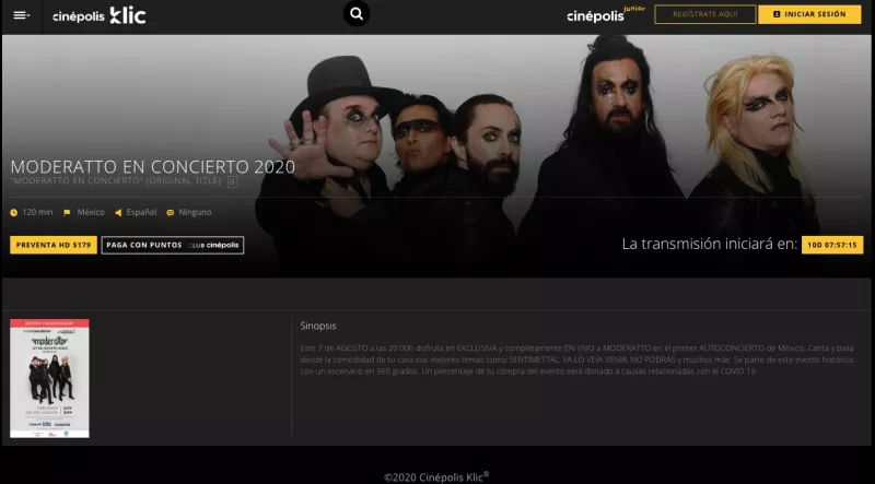 Todas las industrias se han adaptado a diferentes modalidades y salieron de su zona de confort en los últimos meses. El cierre de cines y el desfase de estrenos de películas llevaron a Cinépolis Klic a apostar por nuevas alternativas de contenido, y por ello, el 7 de agosto transmitirá en streaming el autoconcierto de Moderatto que se llevará a cabo en el Foro Pegaso, donde se darán cita 2,000 automóviles.