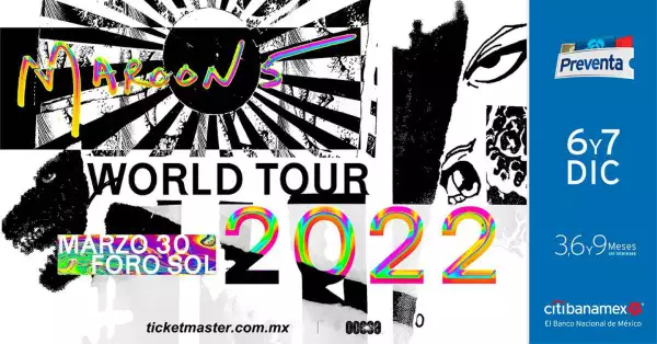 Maroon 5 se suma a la lista de espectáculos que visitarán México el próximo año. La banda liderada por Adam Levine dio a conocer por sus redes sociales que será el 30 de marzo de 2022, que se reencontrará con sus fans mexicanos en el Foro Sol de Ciudad de México. Dentro de la gira “Maroon 5 World Tour 2022″.