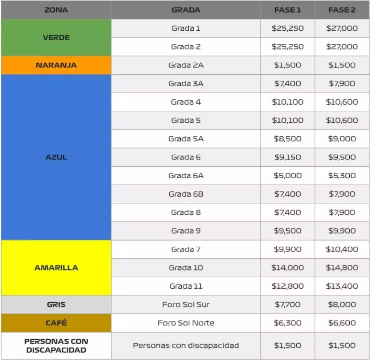 El costo de las entradas iba de los 27 mil pesos a los 6 mil 600 pesos mexicanos.
