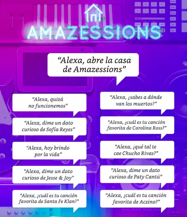 Las sesiones musicales se puede ver y escuchar a través de Alexa, en dispositivos Echo Show y Fire TV Stick, o bien escuchar en dispositivos Echo sin pantalla. Solo tendrán que decir “Alexa, abre la casa de Amazessions” y seleccionar “concierto” para disfrutar de la sesión de cada semana. Para acceder a un juego tipo trivias musicales solo se necesita seleccionar “trivia”.