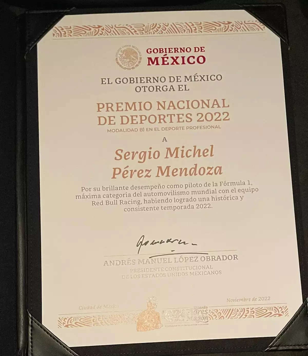 "Checo" recién se encontraba volviendo a México procedente de Japón, por lo que explica en su video. Por esta razón compartió un mensaje agradeciendo la condecoración hecha por la mayor instancia deportiva y del presidente de la nación.
