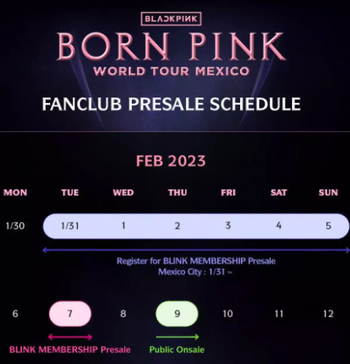 Su Born Pink World Tour dio inicio en 2022 en su ciudad natal Seúl, Corea del Sur, y también pasó por Estados Unidos y Europa. Después de su concierto en CDMX, Blackpink concluirá su gira en Singapur el 13 de mayo.