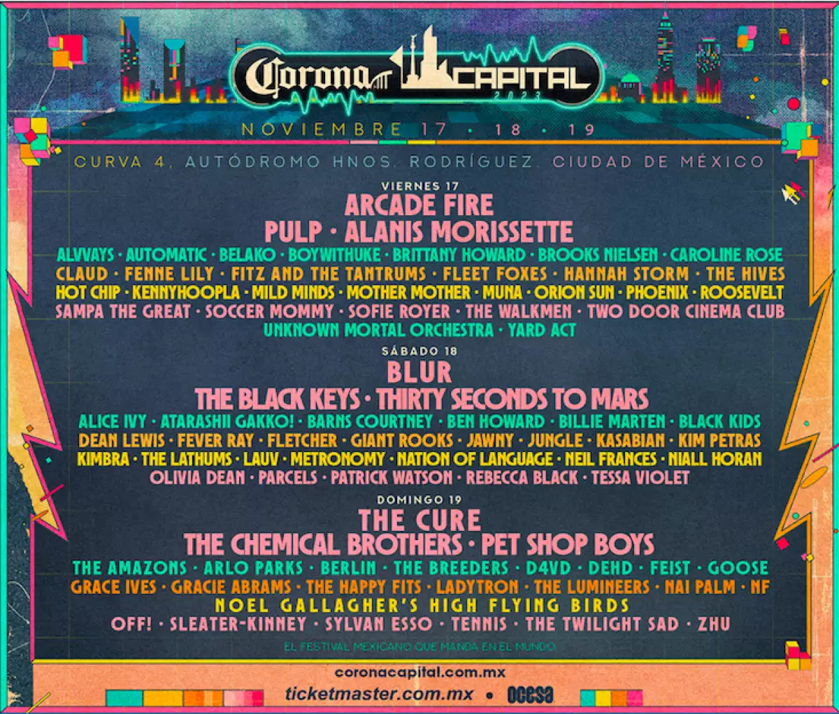 Y este año no fue la excepción, ya que bandas legendarias como The Cure, Blur, Arcade Fire y The Chemical Brothers son parte de los headliners durante los días 17, 18 y 19 de noviembre en la Curva 4 del Autódromo Hermanos Rodríguez.