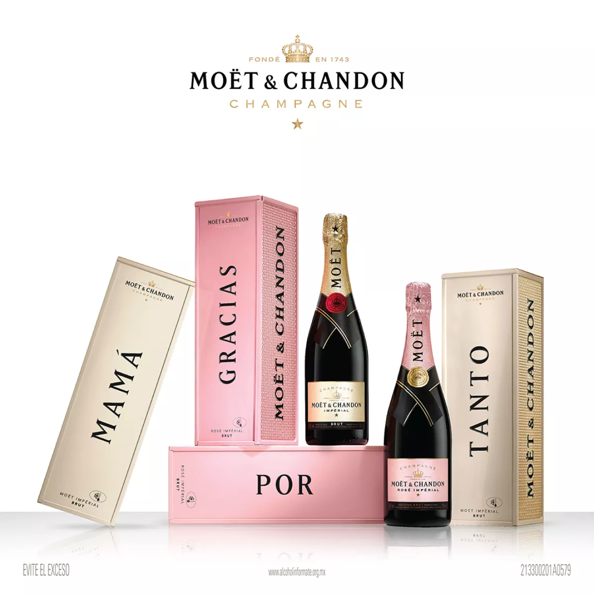 Celebra a mamá con Moët Rosé Impérial y Moët Impérial, gracias a su proyecto Specially Yours, que consiste en ediciones limitadas de ambas etiquetas, presentadas en lujosos estuches de metal personalizables con su nombre o un mensaje cariñoso de hasta 14 caracteres, o, en el caso de Impérial, con uno de seis adjetivos que ponen en palabras la relación de hombres y mujeres contemporáneos con las mamás del siglo XXI: unique (única) , elegant (elegante) , passionate (apasionada) , loving (amorosa) , lively (vital) , thankful (agradecida).