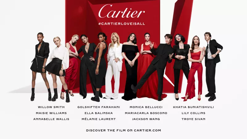 Esta filmación se realizó entre París, L.A. y Shanghai, en esta pieza podemos ver al talento que eligieron como embajadores para LOVE IS ALL. Ella Balinska, Mariacarla Boscono, Monica Bellucci, Khatia Buniatishvili, Lily Collins, Golshifteh Farahani, Mélanie Laurent, Troye Sivan, Willow Smith, Annabelle Wallis, Jackson Wang y Maisie Williams, son las 12 personalidades que representan los valores de Cartier.