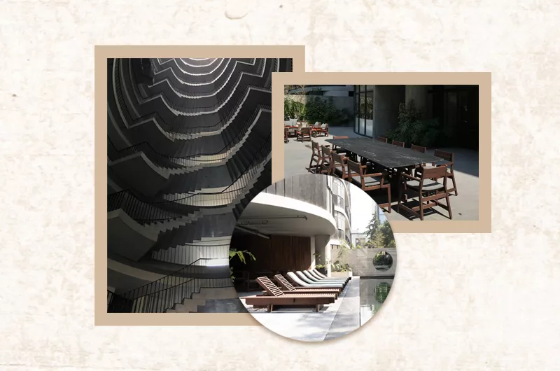 La torre de 14 pisos con una silueta redondeada evoca a la arquitectura de antaño de los 60 del sur de CDMX, acompañado de una terraza perimetral que bordea todo el edificio. Con acabados en concreto, marmol, granito colado, acero negro y madera de ingeniería Pedre se centró en ofrecer funcionalidad y diseño a sus residentes.