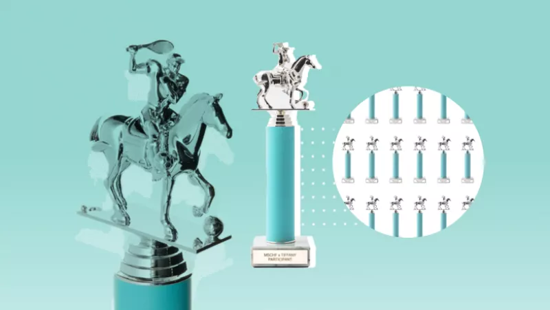 MSCHF es un colectivo de arte estadounidense que involucra arte, moda y tecnología subvirtiendo la cultura popular; y fue elegida por Tiffany para el diseño de una serie limitada de 100 trofeos de participación.