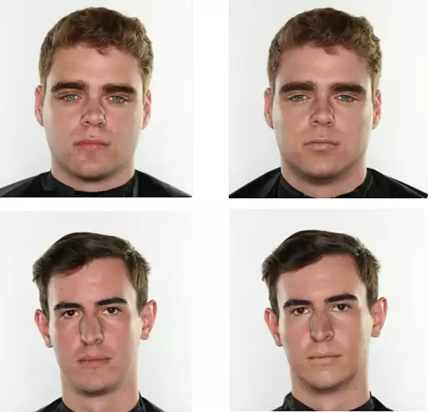 En esas 40 imágenes a evaluar se les omitió un detalle de la apariencia de estos rostros. En la mitad de las fotos, los 20 hombres llevaban la cara sin ningún elemento adicional, facialmente desnudos, Para la otra otra mitad habían sido retocados por un maquillador profesional, que les proporcionó un sutil aspecto "desnudo" mediante la cuidadosa aplicación de correctores, polvos y otros productos similares.