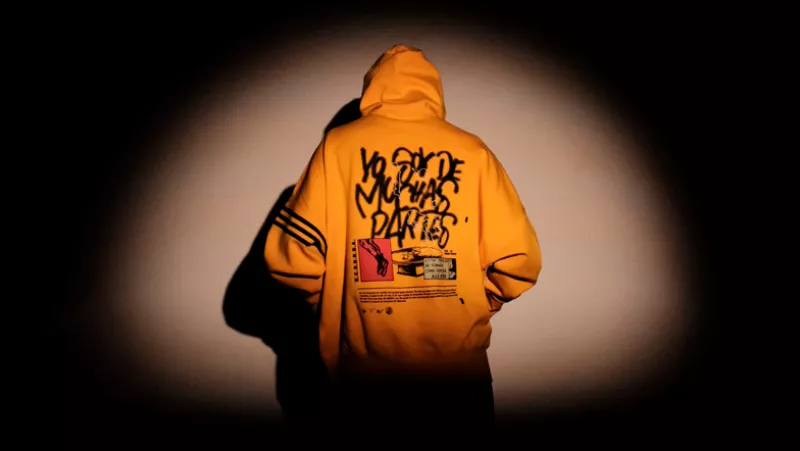 “Los versos se transforman en trazos, y se van pintando las palabras de vibrantes colores, estampados y bordados para dar vida a cuatro piezas de edición limitada. Amarillo, negro, trazos abstractos y emojis serán los elementos encargados de plasmar la visión de las tres marcas que se unen en una colección imperdible para todos los amantes del hype”, es la forma en que Adidas originals describe esta colección.