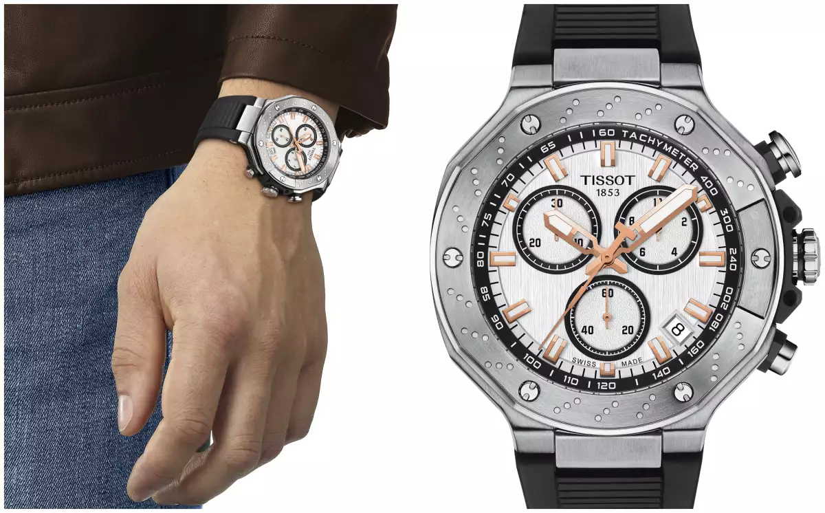 La familia T-Race de Tissot evolucionó a lo largo de los años y en esta ocasión regresa con un nuevo diseño que respeta sus raíces deportivas, pero con una esfera más elegante. Esta nueva colección se inspira en el motociclismo y la libertad; el bisel presenta un disco de freno y una pinza, los pulsadores están inspirados en los manilares y las aletas de refrigeración del motor se representan en el lateral de la caja. Es resistente al agua y con movimiento cronógrafo de cuarzo.