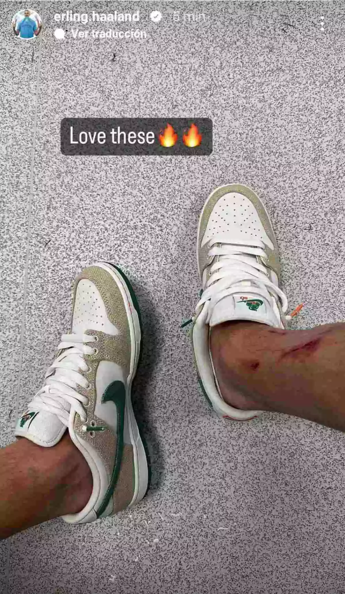 Haaland compartió una historia en la que aparece portando los Nike SB Dunk Low x Jarritos. Las emociones que este ha generado es a razón de su anatomía, así como llevar la imagen con la tradicional figura de la marca Jarritos.