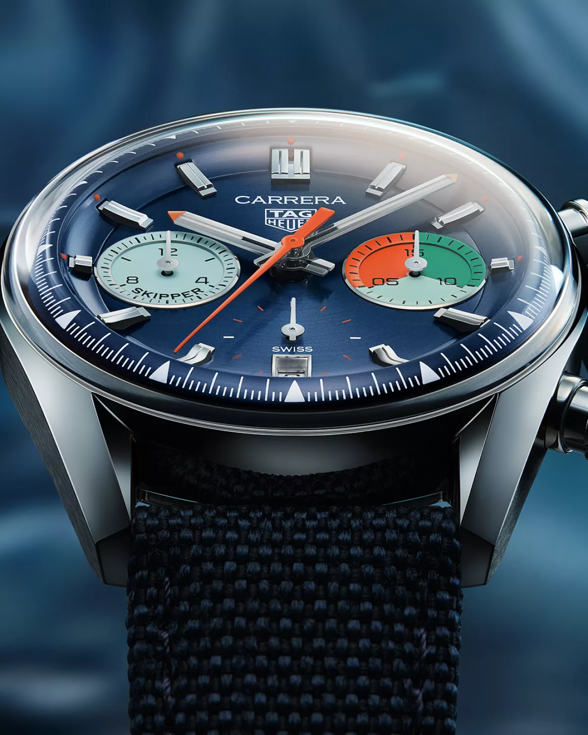 TAG Heuer anunció el regreso del querido Skipper, fabricado en varias series, desde la versión original de 1968 hasta el modelo final de producción completa de 1983. Vuelve exactamente 40 años después de que despareciera del catálogo de la marca. El nuevo Skipper recibe la robusta pero elegante caja de 39 mm de diámetro de Carrera, una reserva de marcha de 80 horas y una correa textil resistente de alta gama. Aunque este modelo es técnicamente actualizado, su aspecto es único e imperdible al modelo original.