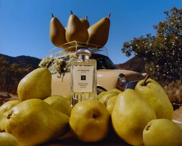 Jo Malone te invita a abrir la puerta al mundo encantado de English Pear & Freesia y descubrir diseños de edición especial, un producto adicional y un nuevo aroma floral ligero que ofrece una versión fresca de este ingrediente atemporal. Esta y su fragancia hermana English Pear & Seet Pea se crean con un extracto de fruta 100% natural. que utiliza un subproducto de la industria alimentaria, el proceso fue desarrollado exclusivamente para Jo Malone London. Cada botella contiene el equivalente a una pera.