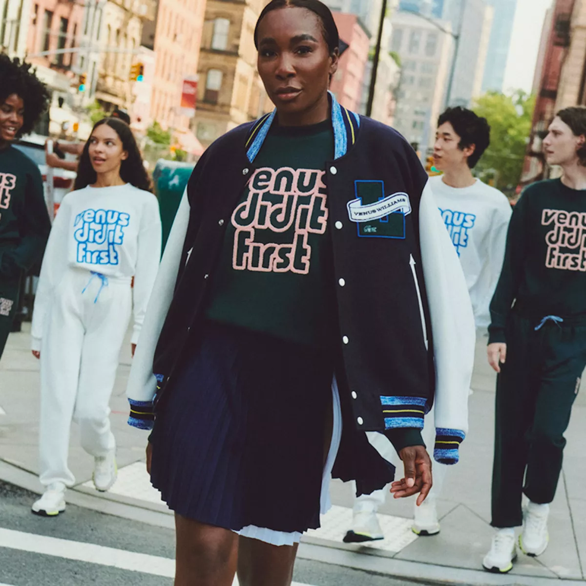 La atleta ganadora de varios títulos de Grand Slam, defensora de la igualdad y la diversidad en el deporte, Venus Williams es también una emprendedora pionera cuya influencia se extiende más allá del tenis. Williams es embajadora de Lacoste desde el 2022, en esta ocasión presenta una cápsula en la que su marca EleVen by Venus Williams se fusiona con la estética de la empresa francesa. Se crearon 18 piezas, incluyendo una falda de tenis plisada y un suéter de lana adornado con la frase “Venus did it first”.