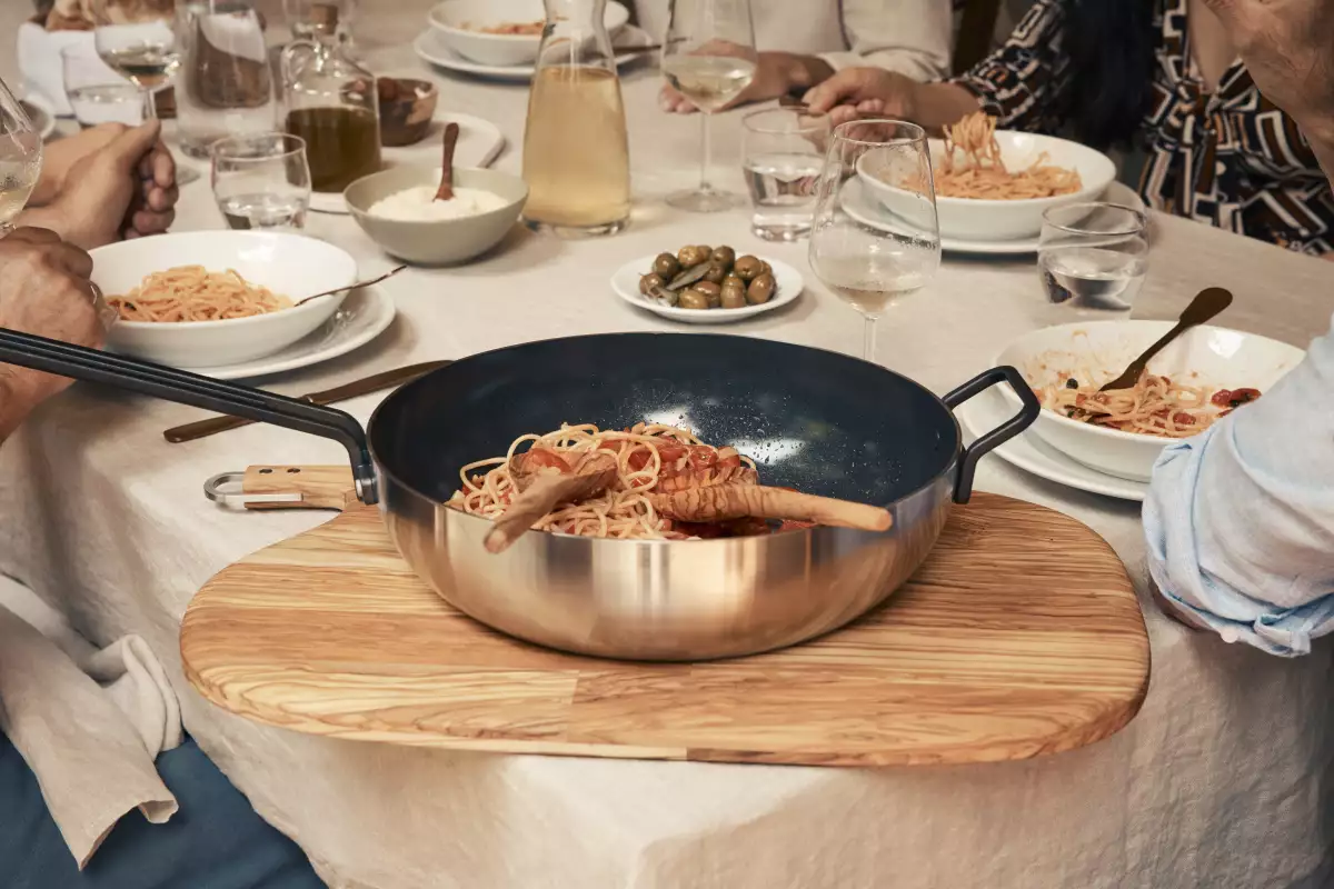 Stanley Tucci lanzó una versátil colección con Greenpan de utensilios de cocina desde cero, centrándose en las innovaciones que llevan la cocina al siguiente nivel. Cada sartén que forma parte de esta colección está meticulosamente fabricada a mano en Italia. Son ideales para el uso diario, desde la amplia superficie hasta el mango de acero inoxidable fundido. La batería de cocina es de acero inoxidable de tres capas diseñada para el uso diario, con bordes cerrados para proteger el revestimiento. Disponible exclusivamente en Williams Sonoma.