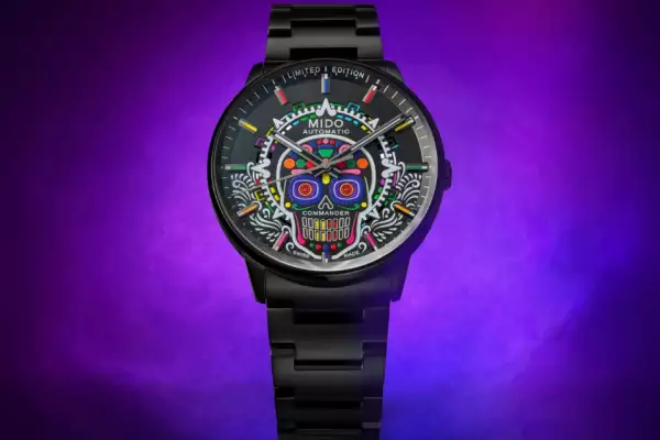 Desde 2020, Mido ha rendido homenaje a esta bonita celebración y para este año la marca lanzó “Circulo de Luz”, una versión edición limitada del Commander, dedicada al místico Día de Muertos. La carátula celebra la icónica calavera, que se asienta sobre un fondo decorado inspirado en el calendario azteca. Cada día es una sorpresa con este modelo, ya que diferentes colores dan vida a su profunda carátula negra. También es presentada además en un estuche exclusivo. Esta edición limitada consta de 777 piezas, un número vinculado a la conexión espiritual y a la buena suerte.