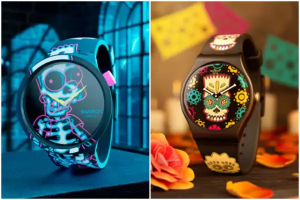 La colección de Los Simpson regresa a Swatch con dos fantásticos modelos que celebran Halloween y Día de Muertos. El primero es el Ay Caramba!, un reloj cuya caja de 47 mm está protagonizada por el original esqueleto de Bart Simpson; su imagen electrocutado se extiende en blanco y rosa oscuro sobre el fondo negro de la esfera y correa. El segundo es D’OH Of the Dead, que reúne a todos los miembros de la familia Simpson y los convierte en una bonita ofrenda decorada con elementos y colores tradicionales por toda la esfera y correa. Ambas relojes los puedes adquirir en tiendas Swatch y en su página oficial .