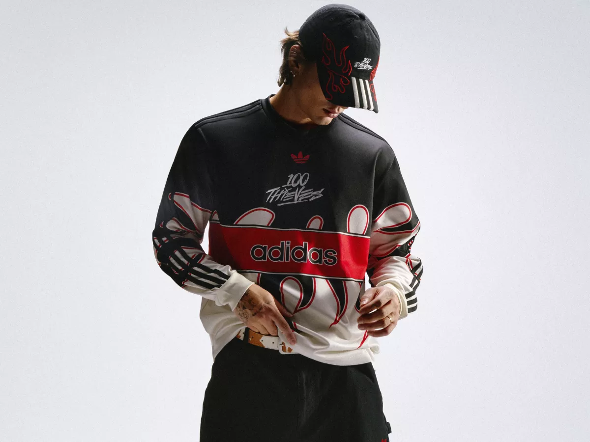adidas Originals y 100 Thieves se unieron este otoño para presentar su última oferta colaborativa en una variedad de ropa, calzado y accesorios. Combinando siluetas de ropa de trabajo con la herencia de la marca de estilo de vida, la colección se centra en una manga larga inspirada en la era original de la ropa de deportes electrónicos en la que los jugadores a menudo se ponían camisetas de motocross. Los accesorios a juego complementan el look de la firma, puestos calcetines y gorra están adornados con un motivo gráfico de llamas y un bolso bandolera presenta detalles de marca compartida.