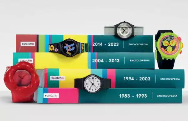La marca lanzó Swatch Encyclopedia, una colección única y compuesta por cuatro volúmenes que celebra cuatro décadas de innovación, alegría y provocación positiva características de la marca. Este lanzamiento recopila 8,419 relojes de la marca en sus páginas. Desde las primeras innovaciones, como la creación del “segundo reloj” favorito del mundo, hasta los exclusivos diseños Bioceramic What If?, pasando por colaboraciones como Omega x Swatch o Biancpain x Swatch. La Swatch Encyclopedia ya está disponible a la venta online.