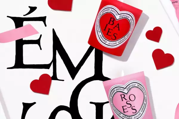 Una armonía de flores y hojas. Este dúo de edición limitada para San Valentín combina los matices verdes y acidulados de Baies (Berries) con las notas florales de Roses. El empaque fue concebido para capturar la esencia romántica de la colección. El emblemático logotipo ovalado de la marca se transforma en un corazón que evoca la forma de unos labios.