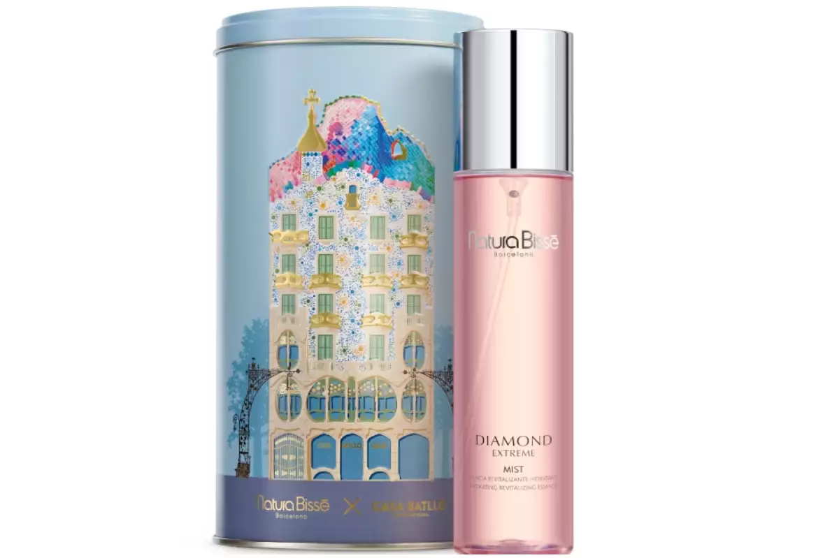 Por primera vez, la emblemática casa Batlló, de Antoni Gaudí, colabora con una firma cosmética de lujo para crear una edición limitada que captura la esencia más pura de la ciudad. Se trata de cofre exclusivo ilustrado con la emblemática fachada de Gaudí, que alberga uno de los productos más icónicos de la Diamond Collection de Natura Bissé: Diamond Extreme Mist, una bruma facial que revitaliza la piel al instale y la hidrata a profundidad. También la refresca y fija el maquillaje con un delicado aroma a lavanda que evoca los campos mediterráneos. La botella es de 200 ml y su precio es de $2,230 pesos.