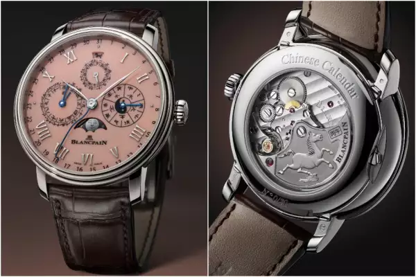 La marca de alta relojería Blancpain celebra el Caballo de Fuego este año con una edición limitada de 50 piezas. Esta pieza realizada en platino destaca por su esfera de esmalte Grand Feu en tono rosa salmón y un rotor de oro de 22 quilates grabado a mano en los talleres Métiers d’Art, donde el caballo aparece en pleno galope como símbolo de energía, fuerza y movimiento. El reloj está impulsado por el calibre 3638, un movimiento automático desarrollado por la marca que ofrece una reserva de marcha de siete días.