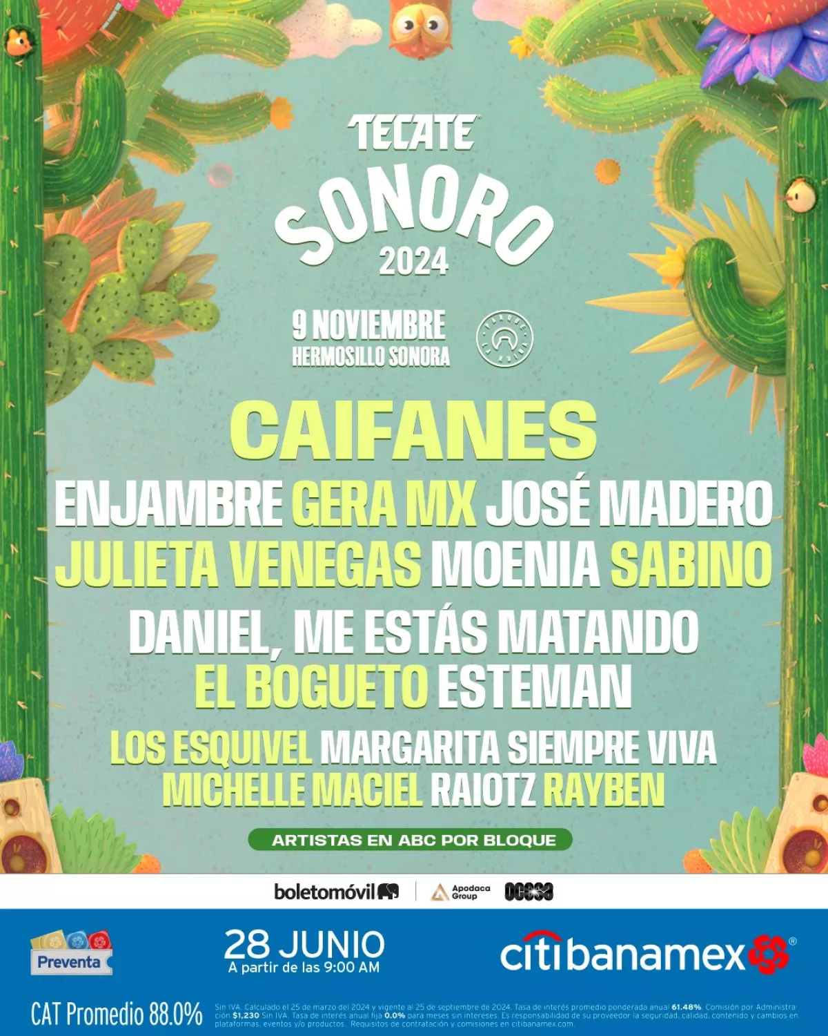 Entre las bandas y artistas invitadas están Caifanes, Julieta Venegas, Sabino y más. La preventa inició este 28 de junio y el evento será el 9 de noviembre.