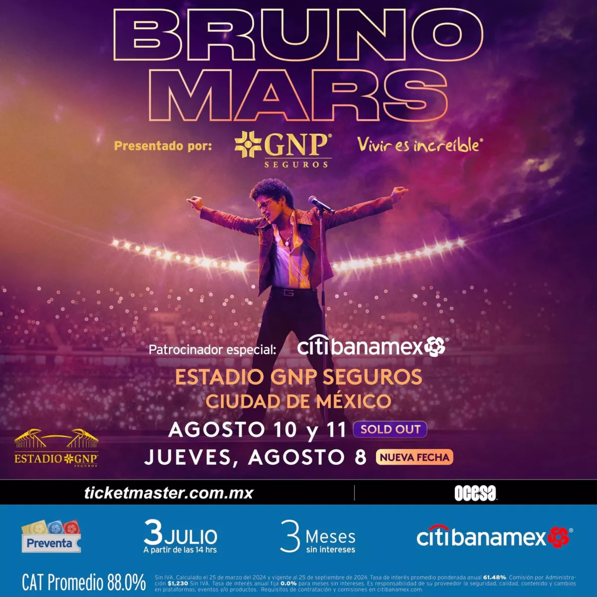Y Bruno Mars no se queda atrás... también añade una presentación más, ya son 3, en el Estadio GNP Seguros