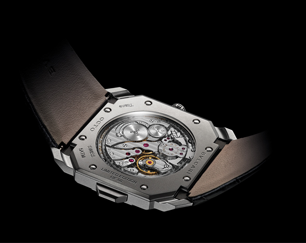 La hazaña es de aplaudirse ya que por lo regular estas piezas se crean en calibres de entre 6 o 7 mm, sin embargo, Bvlgari ha conseguido reducirlo al máximo y crear lo que ya se puede llamar uno de los primeros repetidores ultraplanos de la historia de la relojería. Para agregarle más valor y estética fue creado en una caja de titanio que, además lo hace muy ligero, apenas 23 gramos, dentro de la colección Octo que destaca por su caja creada por el genio Gerald Genta. Es una edición limitada de tan sólo 50 piezas.