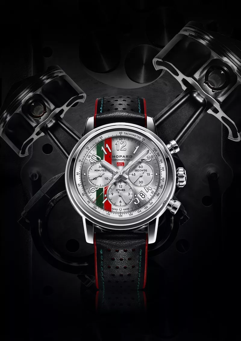 Chopard da un giro mexicano a su icónica colección Mille Migila, gracias a una nueva declinación de edición limitada a 50 piezas, que rinde homenaje a los aficionados a las carreras de autos en México: Millle Miglia Racing Stripes Mexico Edition, una referencia certificada COSC, vestida con los colores de México, y el espíritu deportivo y elegante que caracteriza a la colección.