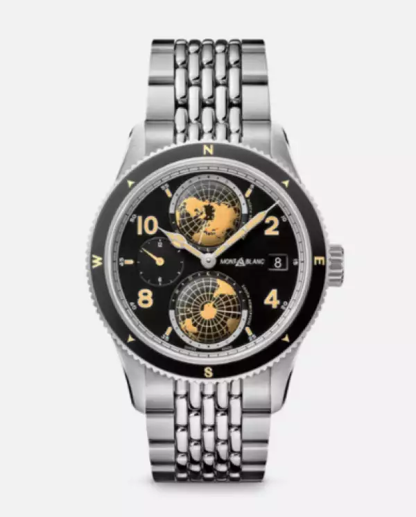 El Montblanc 1858 Geosphere se inspira en reto alpinista de las siete cumbres del mundo, el santo grial del alpinismo de aventura. Este presenta una caja de acero de 42 mm con detalles de diseño negros y beige en contraste. Este modelo muestra una conjunción de hora mundial desarrollada por los relojeros de la Manufactura Montblanc en Villeret, con dos globos abovedados que giran en direcciones opuestas y completan una rotación en 24 horas.