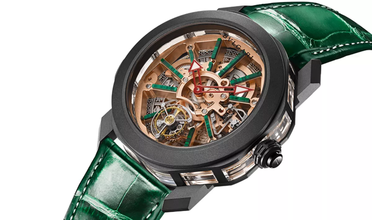 Además de las horas y los minutos, se ha incluido un tourbillon volante que realza el trabajo técnico logrado por el equipo de Fabrizio Buonamassa, director creativo de Bulgari.