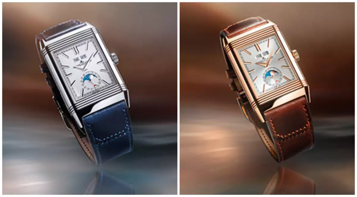 Ambas se acompañan de correas intercambiables de piel de becerro azul, así como una de piel y lona creadas por la casa Fagliano, un reconocido taller argentino especializado en la fabricación de botas de polo que, desde 2011, tiene un vínculo en la fabricación de correas para Jaeger-LeCoultre.