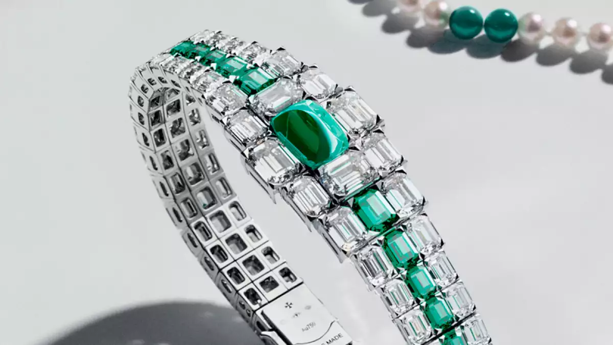 Esta nueva entrega de rasgos art déco es una celebración a la feminidad y el ingenio en la que cada gema, tallada con maestría, narra una historia de elegancia y lujo y brinda la posibilidad de convertir cada reloj en un collar u otra joya.
