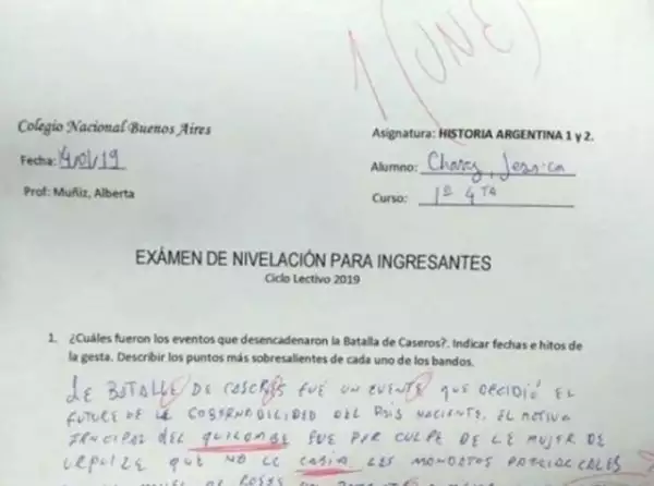 La estudiante de nombre Jessica Chang en un examen de ingreso al Colegio Nacional de Buenos Aires su calificación fue reprobatoria y compartió este resultado por sus redes sociales, ya que este resultado se ligó a su forma de escribir, en lenguaje inclusivo.