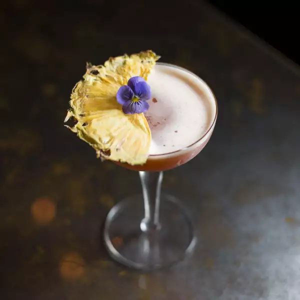 Este bar se ha hecho famoso no sólo por los tragos de la casa, sino por sus colaboraciones con bartenders de distintos lugares. Y en esta ocasión, el norteamericano Adam Stemmler –famoso por su trabajo en Vin de Syrah, en San Diego– nos sorprendió con un trago en el que, como pocas veces sucede, el amargo de Angostura toma un papel protagónico, con 20 ml, en lugar del par de dashes que suelen emplearse. Al combinarse con mezcal, piña y jugo de limón amarillo, el resultado es un trago fresco, fácil de tomar, pero sin rayar en lo exageradamente dulce.