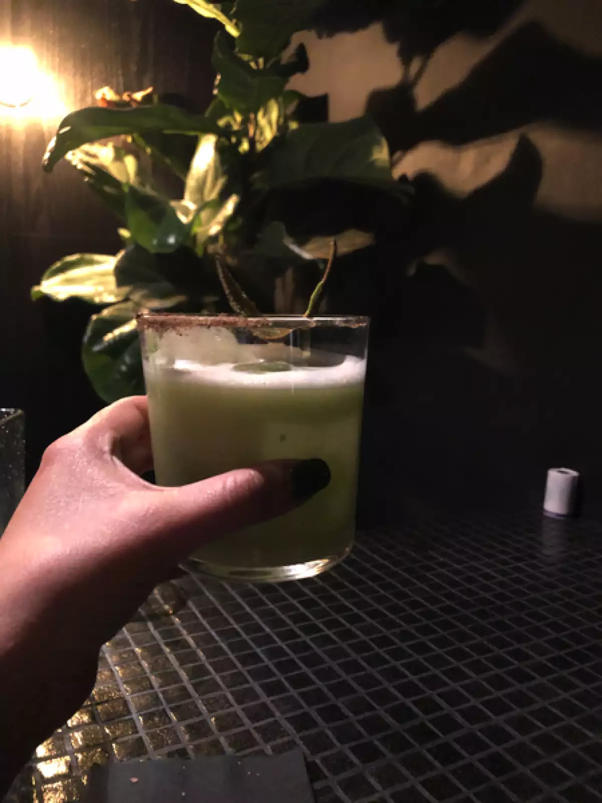 Sirve en un shaker 1 1/2 oz Casa Dragones Blanco, 1/2 oz licor de naranja, 1/2 oz Ancho Reyes verde, 1/2oz de jarabe natural, 2oz jugo de piña natural, 1/4 aguacate en un shaker. Agita, cuela y sirve en un vaso old fashion escarchado con sal de chipotle. Como garnish, usa la c´áscara de aguacate.