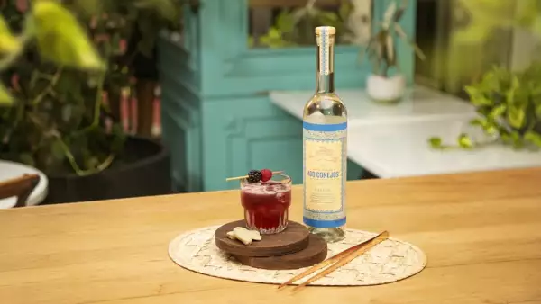 Mezclar el mezcal, cuatro frutos rojos, tres rodajas de jengibre, el jarabe natural, hielo y shakear. Colar en un vaso y decorar con una brocheta con frutos rojos.
