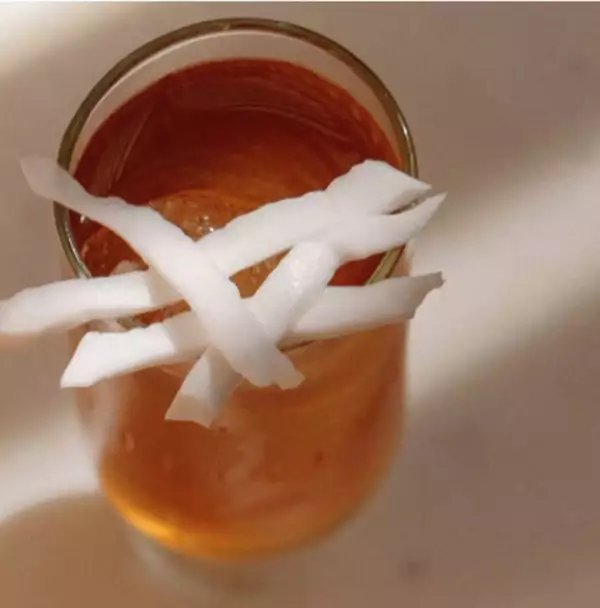 Se vierten todos los ingredientes en un shaker con hielo y se baten por 30 seg. Se sirve en vaso old fashioned lleno de hielo. Se puede decorar con una ramita de hierbabuena.