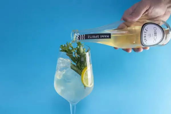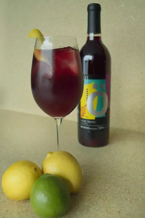 Llenar de hielo una copa de vino y enfriarla bien. Poner cada ingrediente y mezclar. Decorar con un rodaje de limón amarillo y hojas de menta.