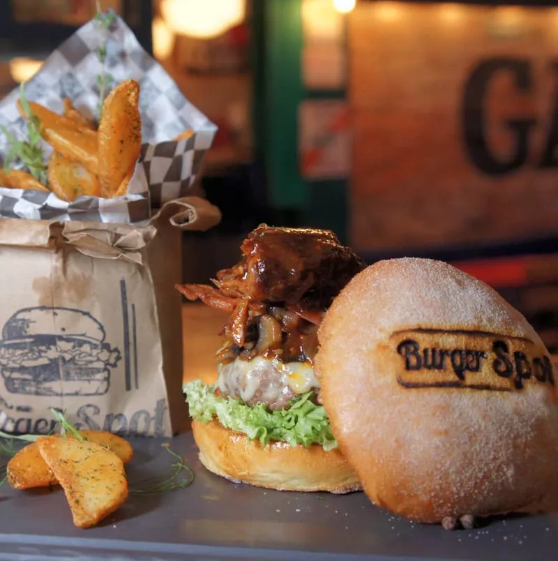 La otra creación que probé y que es una muestra de la inventiva y locura que puede generar una buena hamburguesa, es la D’Acosta (inspirada en el superstar chef Quique D’ Acosta): ésta joya tiene, además de lo básico, queso Oaxaca, champiñones al ajillo, tuétano (si, tué-ta-no con todo y su hueso), chiles toreados con mucha cebolla, lechuga, tomate y pepinillos. Magistral. El sabor de todo combina a la perfección y el picante de los toreados le da una patadita muy bienvenida. Si de repente uno se cansa de la hamburguesa tradicional americana, Buger Spot es una gran opción. Hay mucho de donde escoger y a un nivel increíble y bien logrado. Uno pensaría que, como es hamburguesa de señor (y señor pudiente, puede ser), el precio sería como de club-de-yates, pero no. Para nada. No se cómo le hacen, pero ofrecen estos manjares, con estos grandes ingredientes, a un precio bastante competitivo. Créame: repetirá si se anima a probarlas.