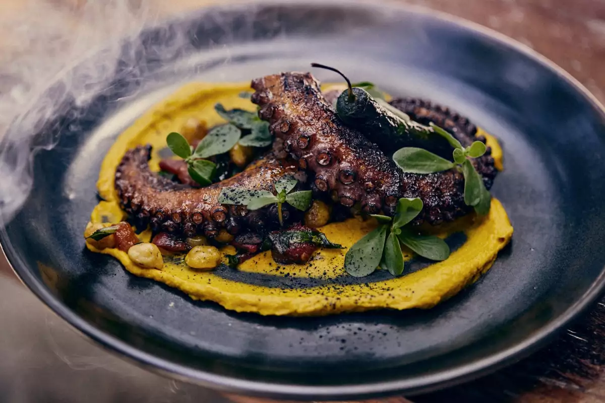 El chef Dardano emplea distintas técnicas culinarias de la gastronomía latina y morisca, y transforma el ingrediente local, fresco, en platillos de personalidad única, que oscilan entre lo acogedor y lo exótico, mientras a simple vista resaltan por un emplatado impecable.