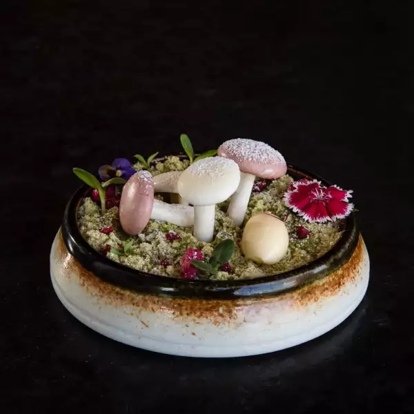 Luego de darnos la bienvenida con una amplia sonrisa, el mesero nos dijo que estábamos por embarcarnos en un intenso viaje. Y no exageró. Cada uno de los platos del menú de ocho tiempos que el chef ejecutivo Mayank Istwal había preparado, contaban una historia. Algunos, por ejemplo, nos llevaron directo a su niñez y a las costumbres de su familia en la India, como las lentejas cocidas lentamente durante 72 horas, y otros directo a sus recuerdos de las veces que ha visitado México. La presentación del postre, un plato de hongos falsos elaborados con yogurt, es inolvidable.