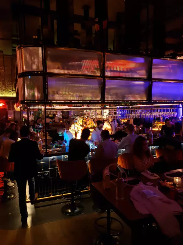 Detrás de la cortina la atmósfera es vibrante. Más que un restaurante, este nuevo sitio (de los mismos creadores del BCN) se siente como un lugar para celebrar, con un DJ en vivo en medio del lugar poniendo música que te hace bailar en el asiento. Las letras de su nombre son el código del aeropuerto de Madrid, pero bien podrían ser un guiño a la experiencia un tanto alocada, juguetona y de marcha que vive. Ojo, el selfie spot (una suerte de casa de los espejos donde la iluminación cambia de color), está de camino a los sanitarios.